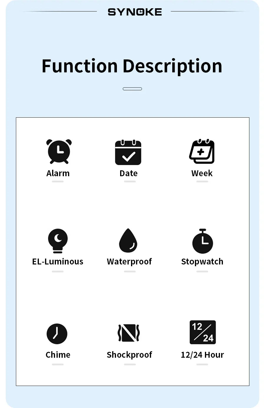 SYNOKE dijital spor saat, dijital hassasiyetle zamanı doğru ölçen, suya dayanıklı ve çok fonksiyonlu tasarımıyla hem erkekler hem kadınlar için ideal bir seçenektir.